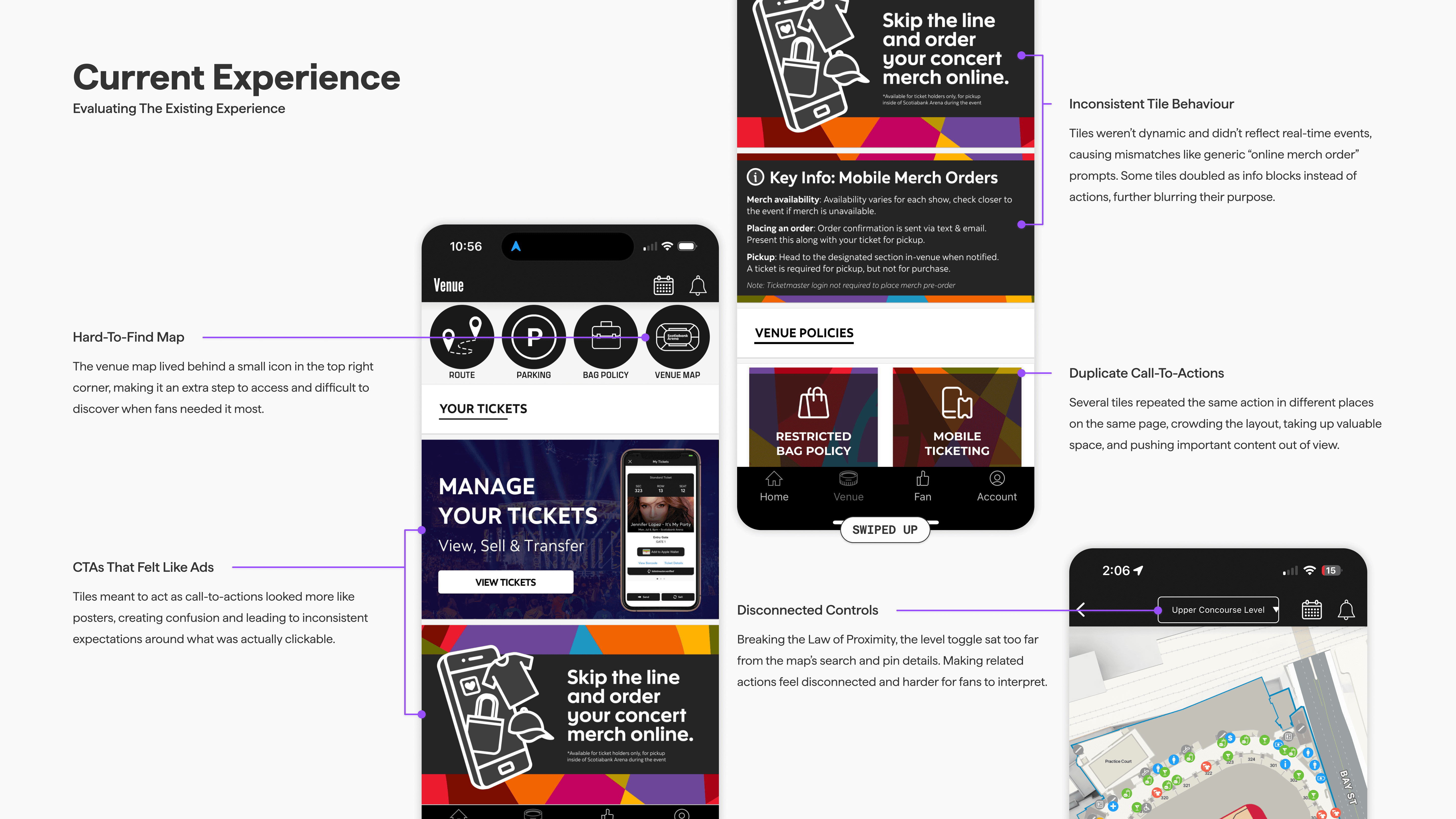 This project was a rare and meaningful milestone, designing an app for the venue I grew up visiting as a fan. It went beyond creating a smooth experience for today’s visitors; it was also a chance to address pain points I had personally felt over the years while learning the ins and outs of native app design, systems thinking, and how those layers come together in practice.